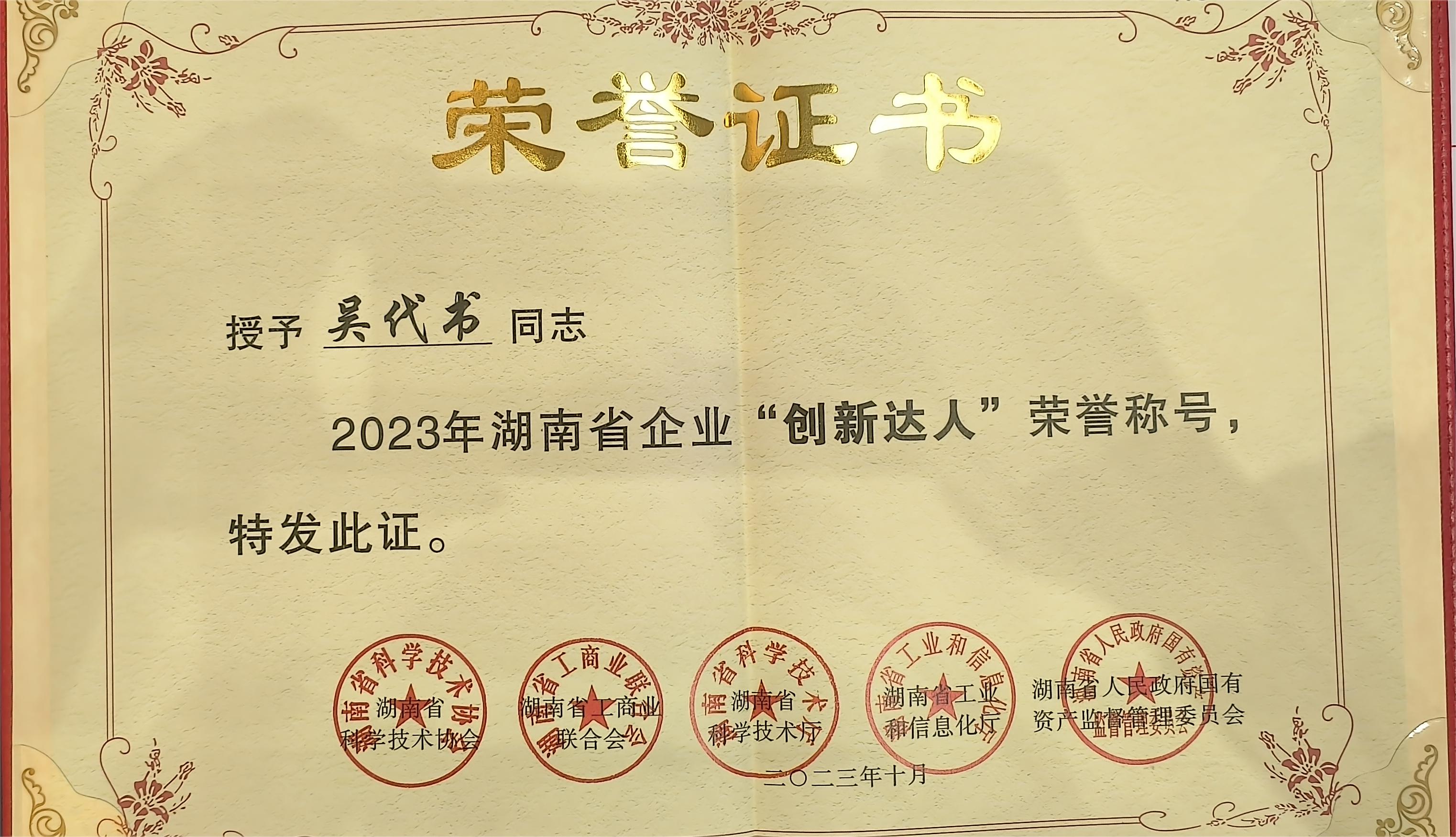 喜訊!恭喜吳代書總監(jiān)榮獲 湖南省企業(yè)“創(chuàng)新達(dá)人”!